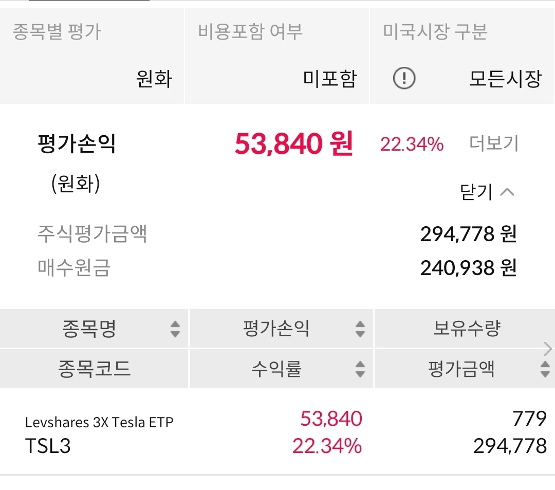 미실현손익 총합 : 11,197,449원 + 53,840원 = 11,251,289원