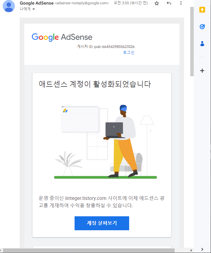 오늘 아침에 애드센스 합격 메일이 도착했다!